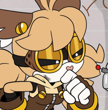 Ampere is a mechanic that resides in Windmill Village. Expert in Eggman Technology, she has spent part of her life studying the robots and mechanisms from the doctor, as well as repairing and reprogramming them in order to offer robot assistants to those mobians who need help with their daily tasks or chores. But deep down, one of the things she wants to figure out is how to work with Eggman's cyberization, so she can use it to replace her oddly colored sclera for a normal one.She considers that Dr. Eggman is quite a genius, nevertheless, she doesn't approve his decision of using his intelligence for evil, so she strives to use hers for good.Ships with: None.